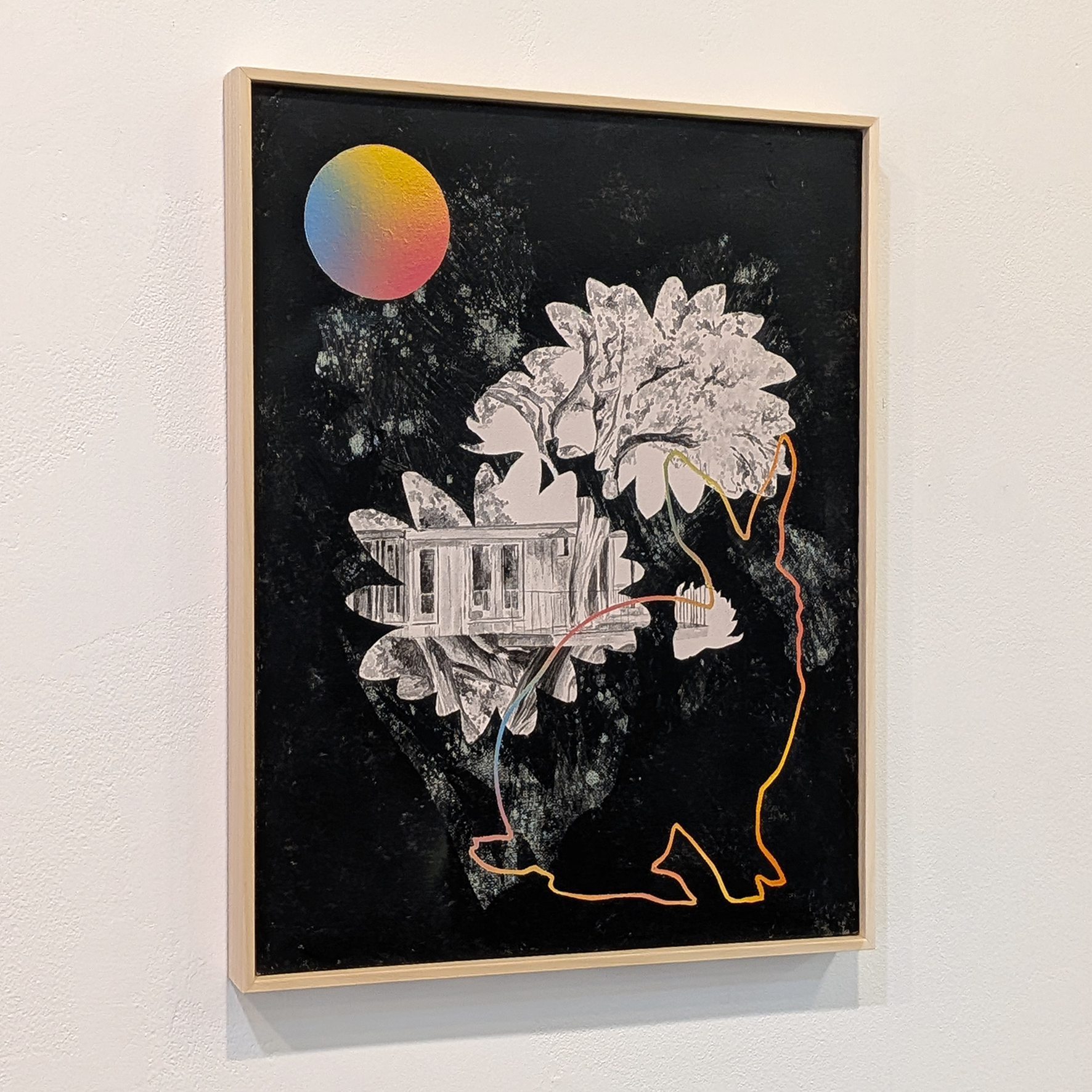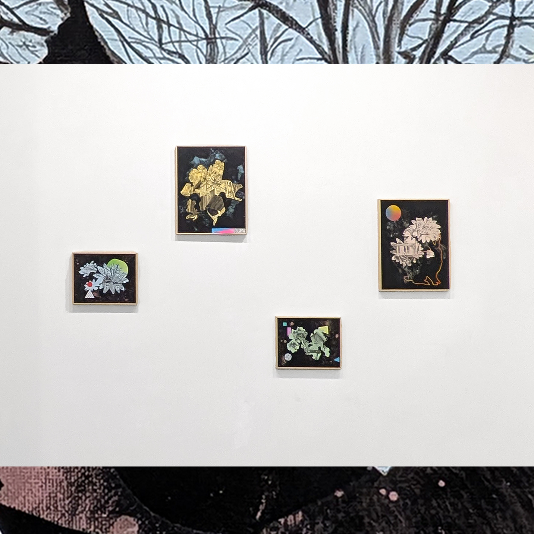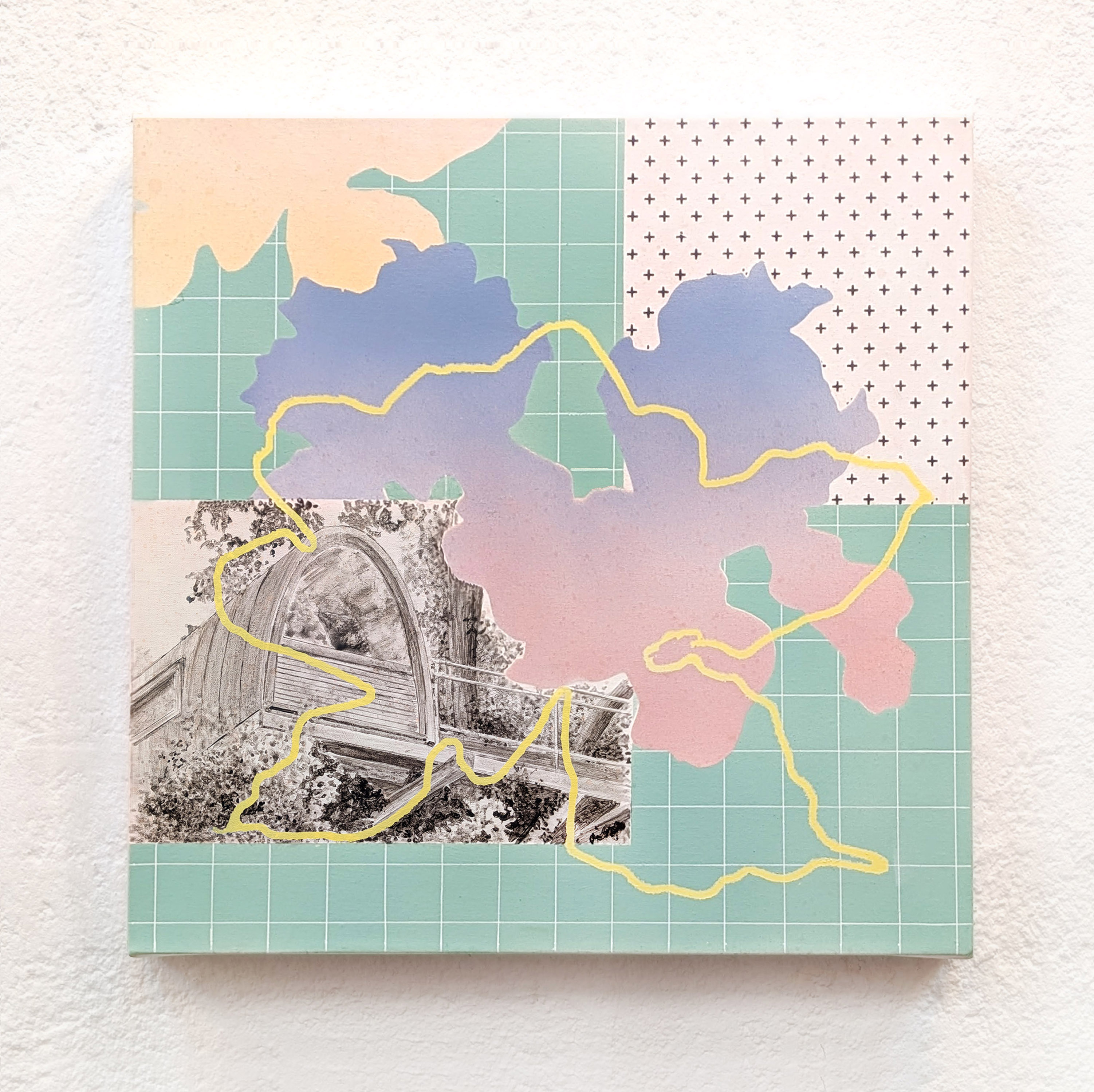 En sus pinturas sobre lienzo las gamas y los degradados, de resonancias Vaporwave,